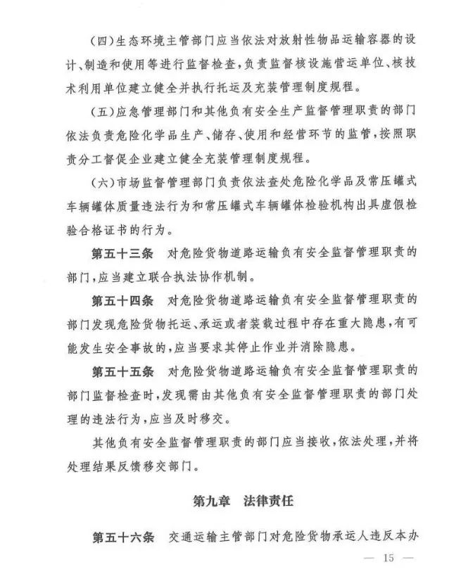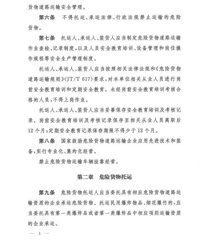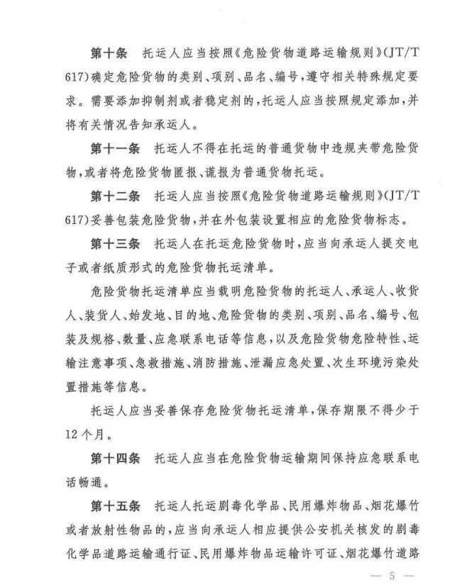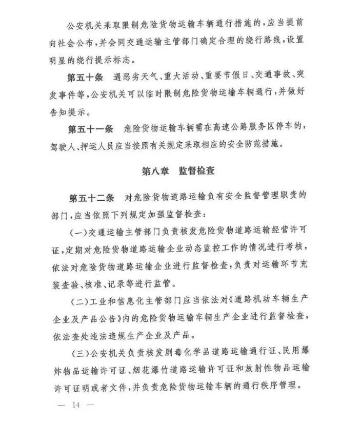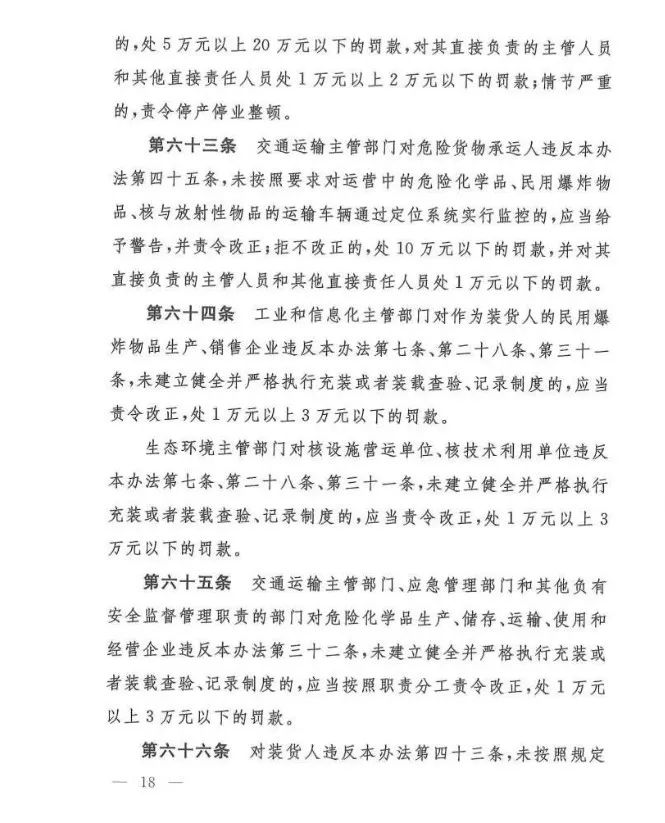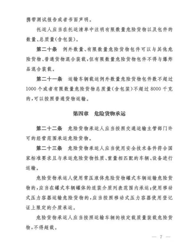 在吸取事故教训、总结各地实践经验、借鉴国际规则的基础上,《办法》对现有危险货物道路运输行业多项制度进行了重大调整和改革,例如:托运清单及运单制度、有限数量及例外数量豁免制度、充装管理制度、常压罐体制造检验制度、车辆承运介质类别管理制度等……