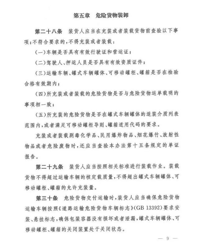 在《危险货物道路运输安全管理办法》正式实施后,托运人将承担更多的责任,诸如培训、分类、包装、标签、信息的传递等等,都属于危险货物托运人必须承担的责任。而作为承运人,也需要了解产品的危害特性,合规合理的对危险货物进行装卸、运输。