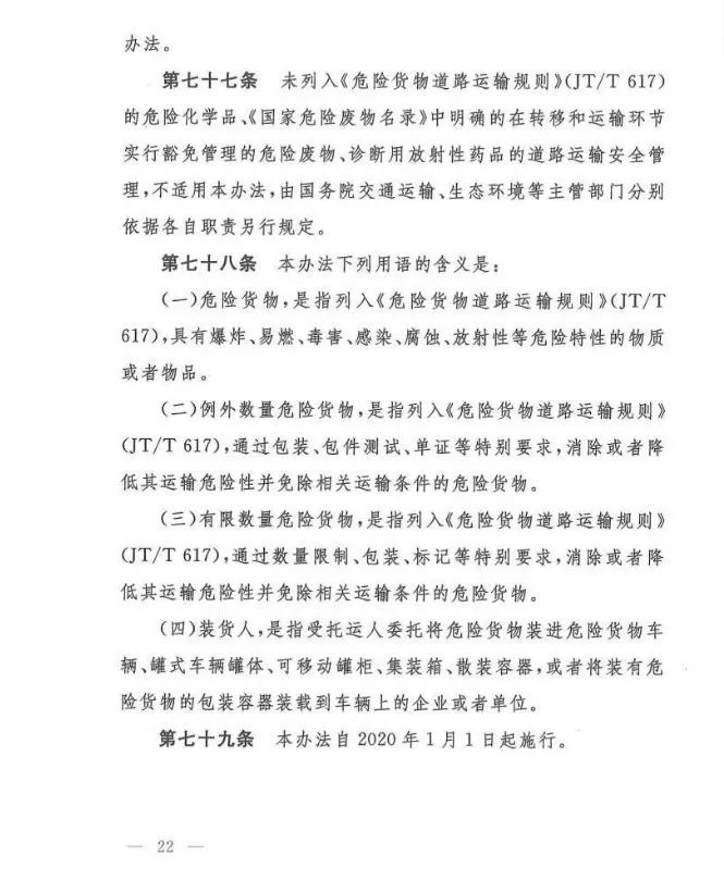 《危险货物道路运输安全管理办法》发布,2020年1月1日起实施